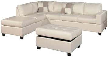 Bobkona Soft-touch Reversible Bonded Leather Match 3-Piece Sectional Sofa Set, Cream,Poundex,F7354,POUNDEX-F7354-B003BVJB1Y
