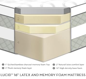 16" LUCID by LinenSpa Natural Latex and Memory Foam Mattress Plush Four-Layer with Bamboo Charcoal Bed 25-Year Warranty, King,Lucid,LU16KK6PLM