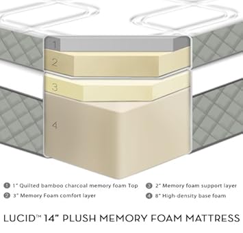 14" LUCID by LinenSpa Cashmere Covered Plush Memory Foam Mattress Four-Layer Viscoelastic with Bamboo Charcoal Bed 25-Year Warranty,Lucid,LU14KK6PMF