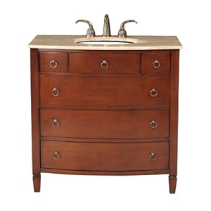 Stufurhome GM-2201-36-TR 36-Inch Augustine Single Vanity in Dark Cherry Finish with Marble Top in Travertine with White Undermount Sink,Stufurhome - Dropship,GM-2201-36-TR,76224