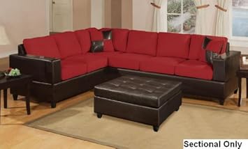 2 Piece Red Microfiber Two Tone Reversible Sectional Sofa by Poundex,Poundex,POUNDEX-F7638