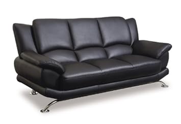 Global Furniture 9908-BL-S W/LEGS Rogers Collection Bonded Leather Matching Sofa, Black with Chrome Legs,Global Furniture - DROPSHIP,9908-BL-S W/LEGS