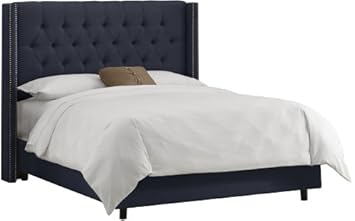 Skyline Furniture Diamond Tufted Wingback Full Bed in Linen Navy,Skyline Furniture DROPSHIP,A-141BEDLINNVY_SV