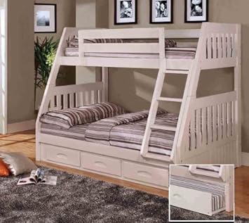 White Mission Bunk Bed Twin/Full with 3 Drawer Storage,Discovery World Furniture,218