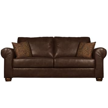 Handy Living OXF1-S6-DAB88 Oxford Transitional Rolled Arm Renu Leather Sofa, Brown With 2 Decorative Paisley Throw Pillows,Handy Living,OXF1-S6-DAB88,HLV1202