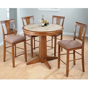 Jofran 477 Saddle Brown Oak 5 Piece Round Tile Top Pub Set,Jofran Inc.,JFR-477-42TB-5-SET