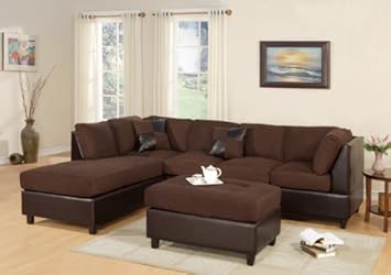 Huntington 3-pcs Sectional Sofa Set w/ Ottoman Reversible in Chocolate Color,PONDF7615_LL3