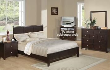 4pc Queen Size Bedroom Set Contemporary Style in Cappuccino,Poundex,Bedset-F9169
