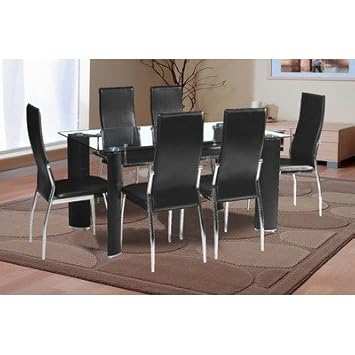 Ketch 7-Piece Dining Set with Black Faux Leather Chairs,Tip Top Furniture,TQF1060