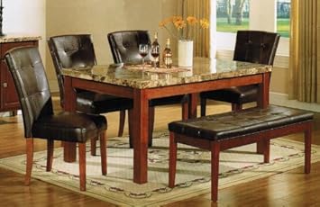 6pc Dining Table, Parson Chairs and Bench Set in Dark Brown Finish,Acme Furniture,ACM07045B-SM-17046X4-07056_MF051912G