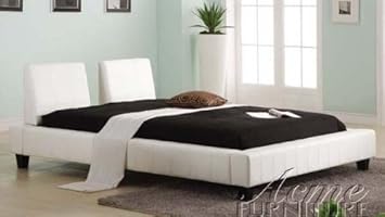 Queen Size Platform Bed in White Bycast Leather,Acme,AM12050Q