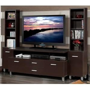 Four-Bay Multimedia Cabinet w Sliding Glass Panel Doors (Walnut),Leslie Dame,1400DC