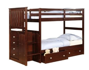 Twin over Twin Mission Stairway Bunk Bed in Cappuccino with Built-in Chest and Under-Bed Drawers,DONCO,820CP-505CP