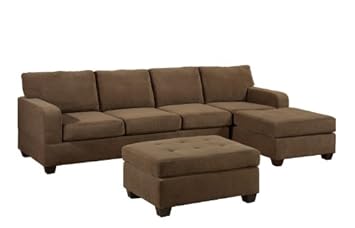 Bobkona Jeno 3-Piece Waffle Suede Reversible Sectional Sofa with Matching Ottoman, Truffle,POUNDEX ASSOCIATES CORP,Y714520