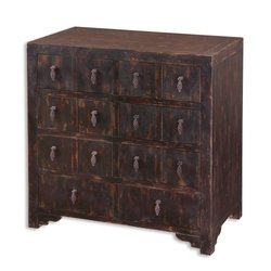 Uttermost 24129 Linhai Accent Chest, Distressed Black with Rustic Walnut - 24129,Uttermost,UT-24129