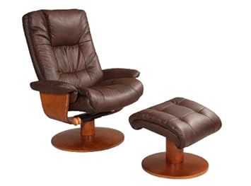 Oslo Collection BRYNE/612/103 Swivel Recliner and Ottomon in Palace Hickory Bonded Leather with Walnut Finish,MAC Motion Chairs - DROPSHIP,BRYNE-PH-612-103,188126