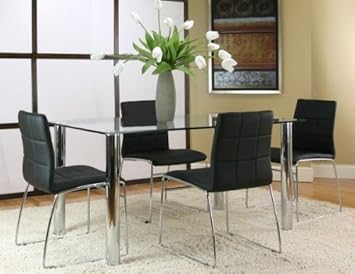 Napoli Rectangular Glass Dining Set with Black Chairs (Black, Chrome) (60"D x 30"H x 36"W),Cramco,165750