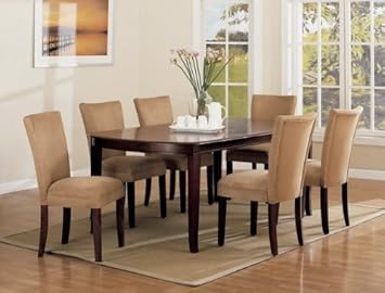 7pc Dining Table and Cream Parson Chairs Set in Deep Cappuccino Finish,Coaster Furniture,COASTER-102261-SET-B0054H46WM