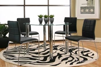 Napoli Round Glass Dining Set with Black Chairs (Black, Chrome) (45"W x 30"H x 45"D),Cramco,165749