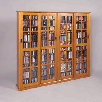 Glass 4-Door Multimedia Storage Cabinet in Oak,Leslie Dame Enterprises,MS-1400,6719