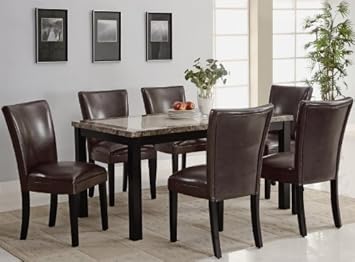 7PC Rich Black and Gray Faux Marble top with Rectangular Leg Dining Table and Chairs Set,AtHomeMart,AZ00-76531x35291