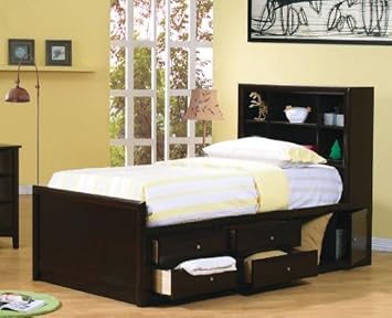 Twin Size Bookcase Chest Bed in Cappuccino Finish,Coaster Furniture,14853