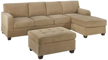 Bobkona Vestor 3-Piece Reversible Sectional with Ottoman Sofa Set, Khaki,POUNDEX ASSOCIATES CORP,Y713021,PONDF7130_F7121_3PC