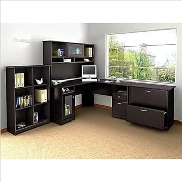 Bush Furniture Cabot 4 Piece L-Shape Computer Desk Office Set in Espresso Oak,Bush,382209