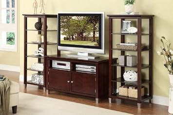 3pc Entertainment Center Set Sliver Legs in Walnut Finish,Poundex,ENTSET-F4708