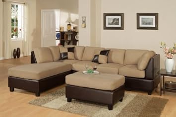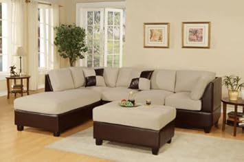 3 pieces Sectional Sofa in Mushroom Finish with free Ottoman and throw Pillows,Hollywood Decor,POUNDEX-F7618-B007O313UM