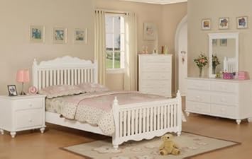 4pcs Full Size Bedroom Set - Cottage Style White Finish,Poundex,BedSet-F9039F
