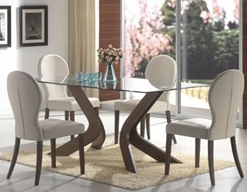 5pc Dining Set Glass Table Top Medium Walnut Finish,Coaster Furniture,Dinset-120361-120362