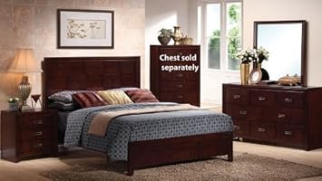4pc Queen Size Bedroom Set with Squares Etched in Espresso Finish,Poundex,BEDSET-F9103