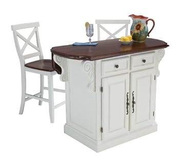 Home Styles 5007-948 Traditions Kitchen Island with 2 Stool, White and Cherry Finish,Home Styles,5007-948,HOM10661_32150