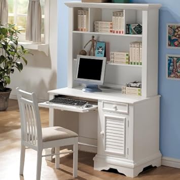 Computer Desk with Hutch Shutter Design in White Finish,Coaster Furniture,CST400127-400128_JJ051912S