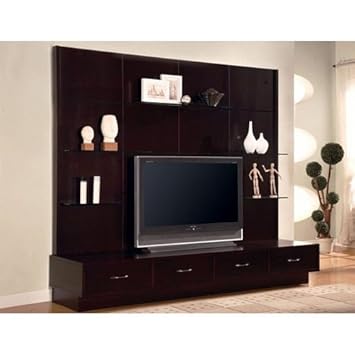 Cappuccino Finish Contemporary Style TV Console with Glass Shelving by Coaster Furniture,Coaster Furniture,CST700185_JJ051912X