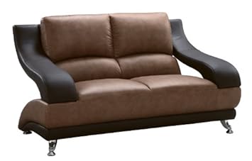 Global Furniture 982-RV-T/BR-L Wyatt Collection Leather Matching Love Seat, Brown and Dark Brown,Global Furniture - DROPSHIP,982-RV-T/BR-L