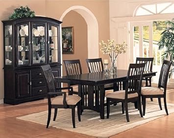 7pc Cappuccino Finish w/Birch Veneers Dining Table & Chairs Set,AtHomeMart,dinset-100181-100182