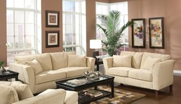 2pc Sofa & Loveseat Set Cream Velvet Fabric,Coaster Furniture,Livset-500231-500232