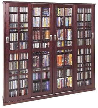 Glass 4-Door Multimedia Storage Cabinet in Dark Cherry,Leslie Dame Enterprises,MS-1400DC,11877