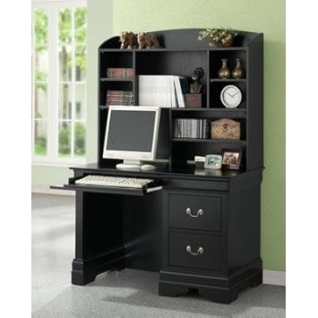 Hayden Louis Philippe Computer Desk with Hutch in Deep Black,Coaster Furniture,CST201077-201078_LP060612G