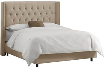 Skyline Furniture Diamond Tufted Wingback Queen Bed in Velvet Buckwheat,Skyline Furniture DROPSHIP,A-142BEDVBCKWT_BR