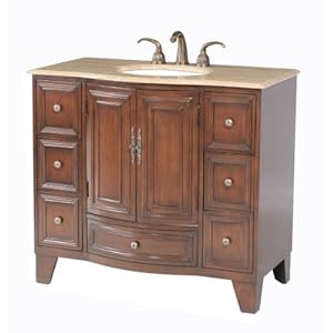 Stufurhome GM-2206-40-TR 40-Inch Grand Cheswick Single Vanity in Dark Cherry Finish with MarbleTop in Travertine with White Undermount Sink,Stufurhome - Dropship,GM-2206-40-TR,533205GM-2206-40-TR