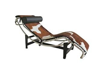 Baxton Studio Le Corbusier Chaise Lounge, Brown and White Pony,Baxton Furniture Studios,990A-Chair-Brown & White,133911
