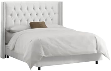 Skyline Furniture Diamond Tufted Wingback Queen Bed in Velvet White,Skyline Furniture DROPSHIP,A-142BEDVWHT_PW