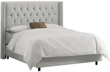 Skyline Furniture Diamond Tufted Wingback Full Bed in Velvet Light Grey,Skyline Furniture DROPSHIP,A-141BEDVLTGRY_PW