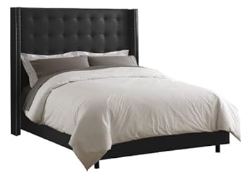 Skyline Furniture Linen Full Nail Button Wingback Bed, Black,Skyline Furniture DROPSHIP,A-531BEDNB-PW-LIN-BLK