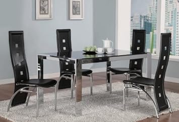 5pc Dining Table & Chairs Set Glass Top Metal Silver Finish,Coaster,Dinset-120280-120282