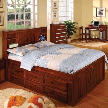 Merlot Full Bookcase Captain's Bed Configuration: 3 Drawers + 1 Trundle Unit,Discovery World Furniture