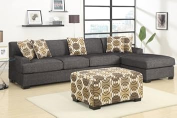 Faux Linen Sectional Sofa in Ash Black Finish With Free accent Pillows,Poundex